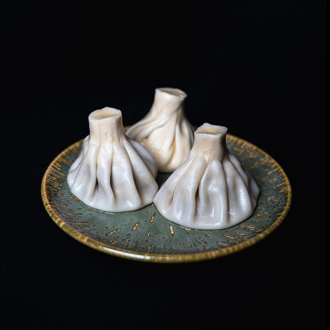 A delicate cheese-filled khinkali, showcasing a soft, creamy filling enveloped in tender dough. A luxurious vegetarian take on the Georgian classic.